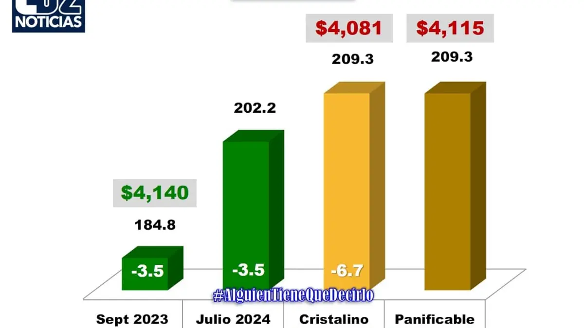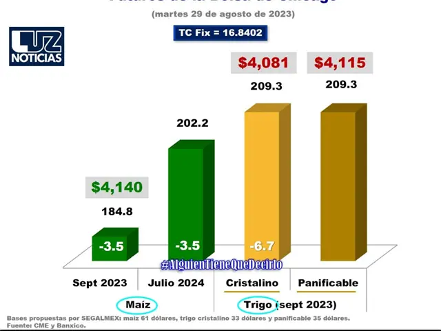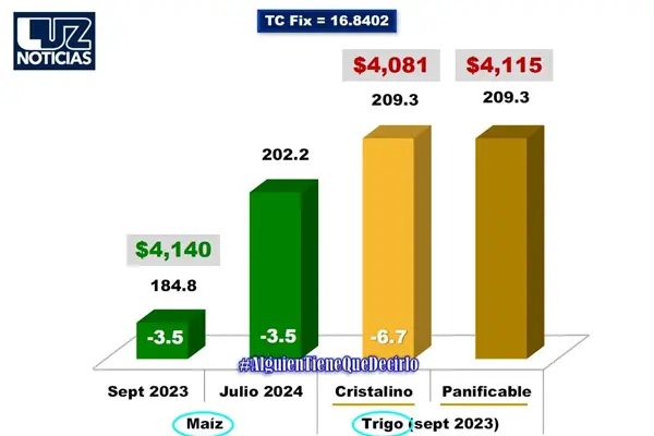 En este escenario, este martes, los futuros de maíz a septiembre del 2023 perdieron 3.5 dólares para ubicarse en 184.8 dólares, lo que significa un precio de referencia de $4 mil 140 por tonelada de maíz (considerando la BASE de 61 dólares propuesta por SEGALMEX).