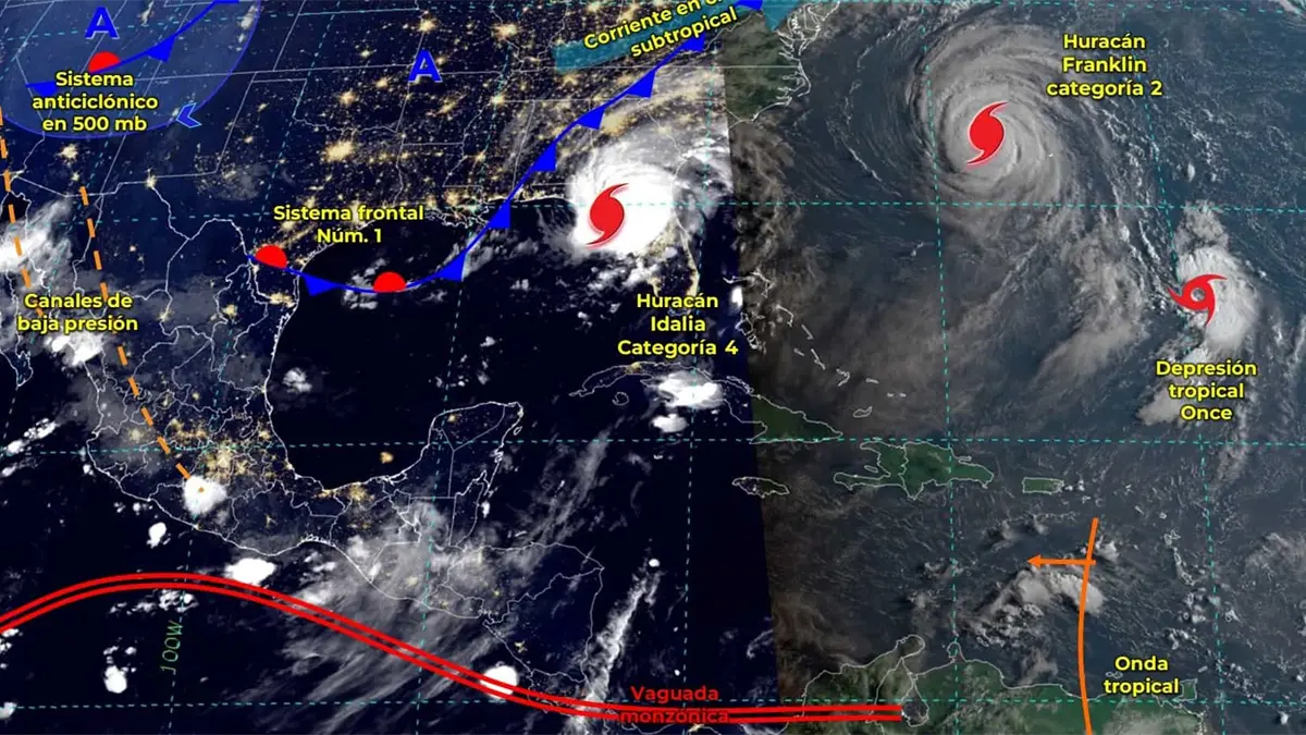 Por su parte, el sistema frontal número 1 se extenderá sobre el norte del Golfo de México y dejará de afectar al país. Finalmente, continuará el ambiente muy caluroso en el noroeste, norte y noreste de la República Mexicana, con temperaturas máximas superiores a 40 °C en Baja California, Sonora, Nuevo León y Tamaulipas.