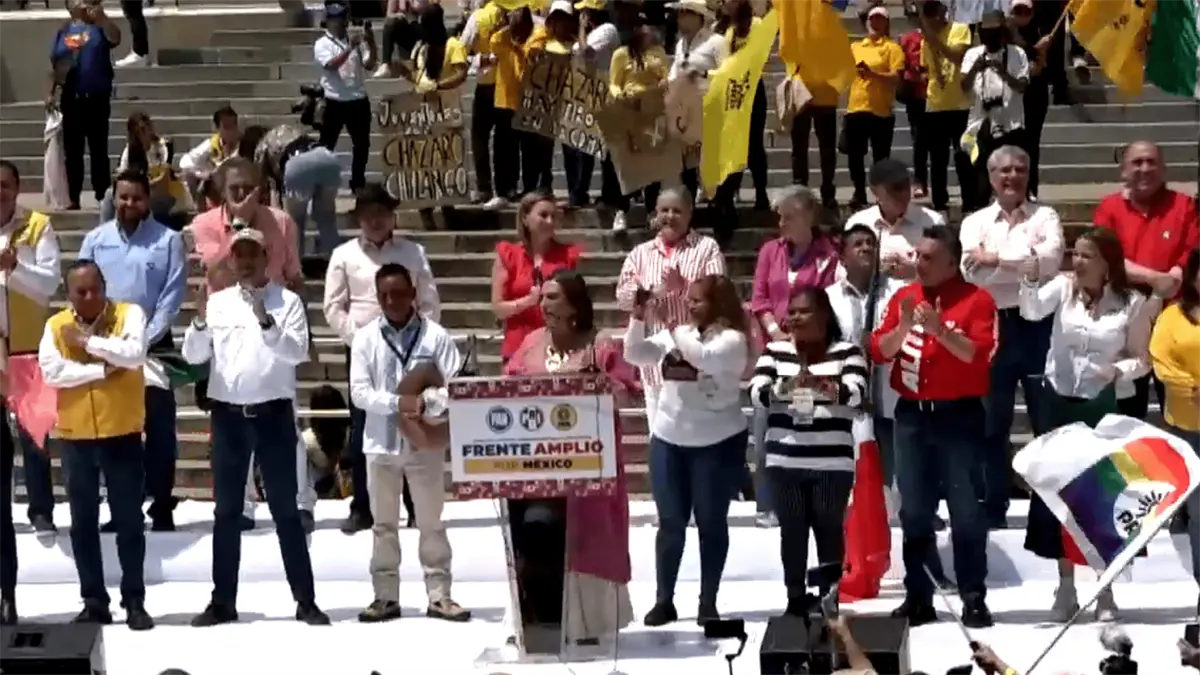 La mañana de este domingo, Xóchitl Gálvez recibió la constancia oficial que la acredita como candidata a la Presidencia de la República por el Frente Amplio por México; el evento se registró en el Ángel de la Independencia, ante miles de personas.