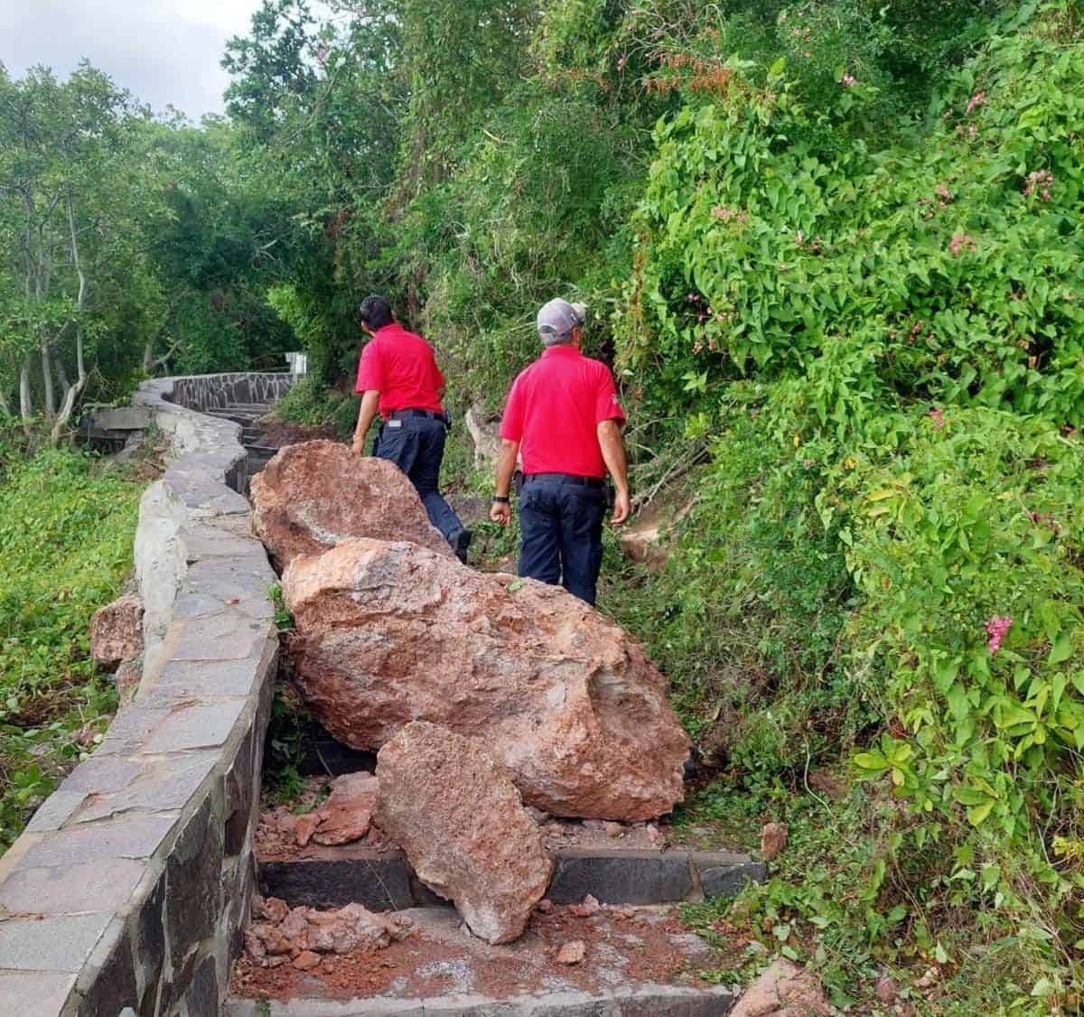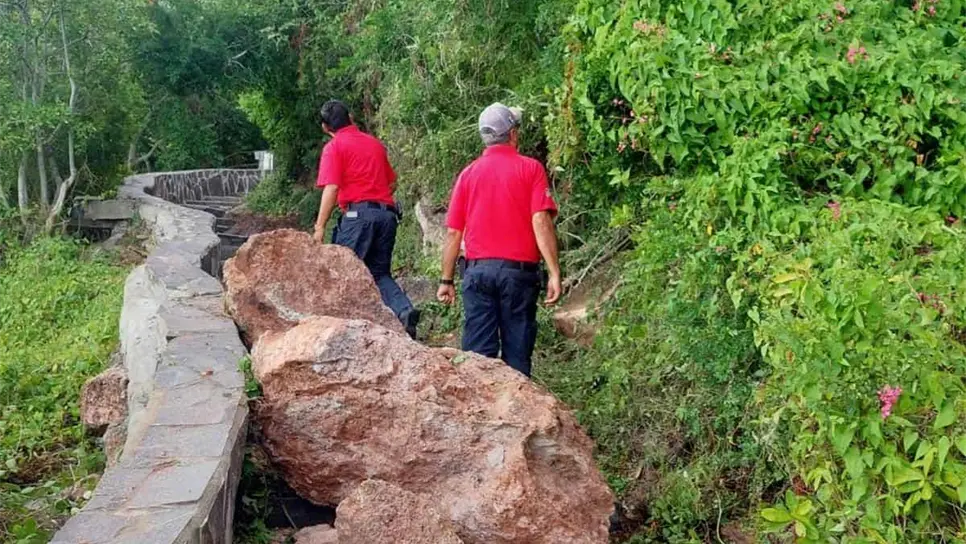 Las lluvias registradas durante la noche del lunes y la madrugada de este martes, ocasionaron que el cerro del Crestón donde se ubica el Faro de Mazatlán, terminara bloqueado por una enorme roca que cayó sobre los escalones derivado de un deslave, informó El Coordinador de Protección Civil Municipal, Eloy Ruiz Gastélum.