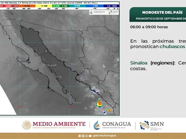 Según su pronóstico, el día de hoy Sinaloa solamente tendrá chubascos en la zona Centro/Norte y en sectores costeros, por lo que se descarta casi por completo que vaya a llover.