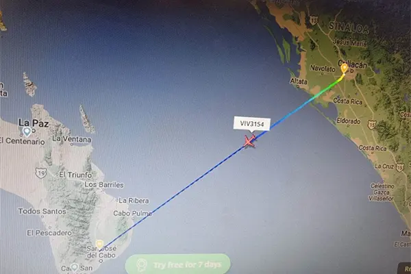 La aeronave salió desde la ciudad de Guadalajara, Jalisco, a San Jose del Cabo, Baja California.
