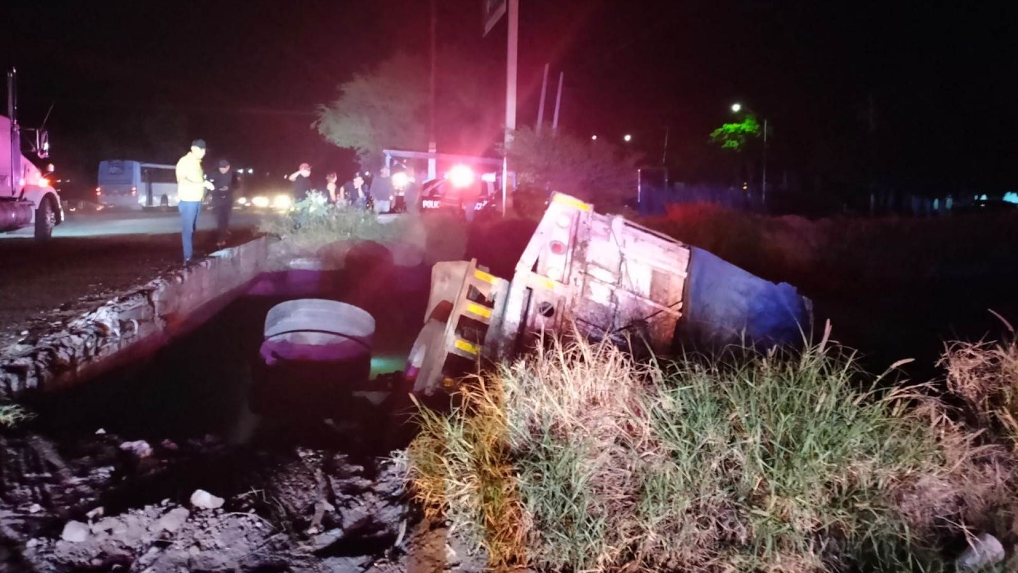Tras limpieza por accidente de camión, retiran 40 llantas del canal lateral 18 en Los Mochis