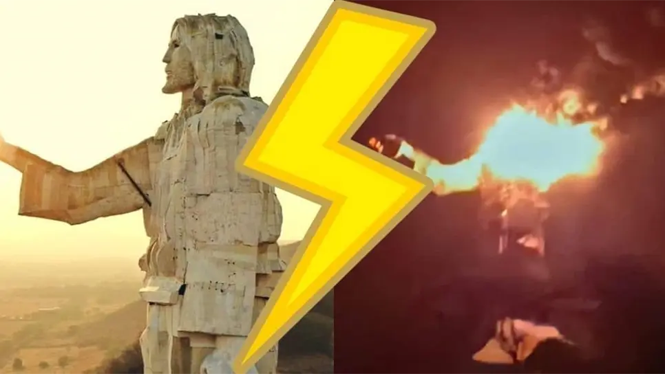 Rayo cae sobre estatua de Cristo Pescador de Chiapas y la reduce a cenizas | VIDEO