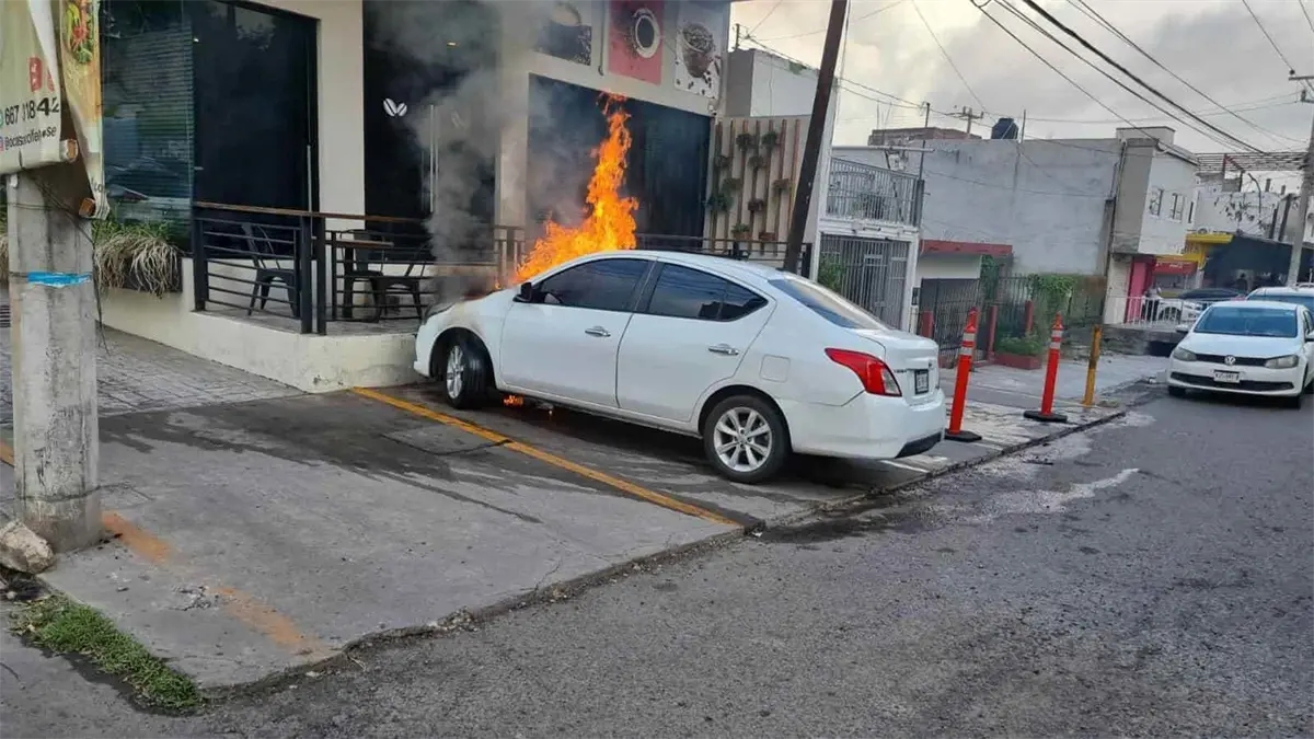La unidad incendiada es un Nissan Versa de color blanco y fue alrededor de las 07:15 horas del día de hoy cuando el vehículo que estaba estacionado a las afueras de una cafetería que se ubica por la calzada Heroico Colegio Militar y 29 de Septiembre comenzó a incendiarse.