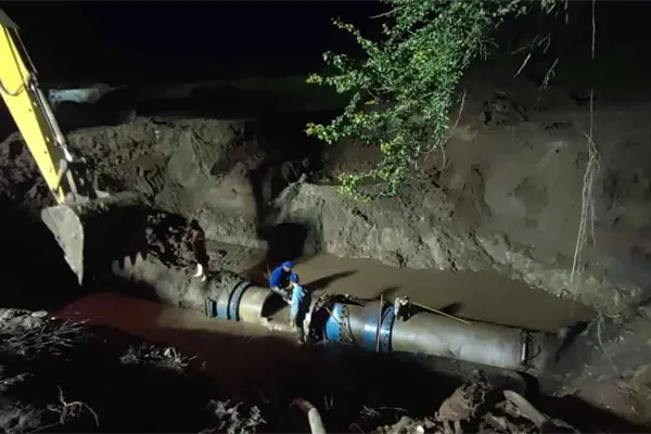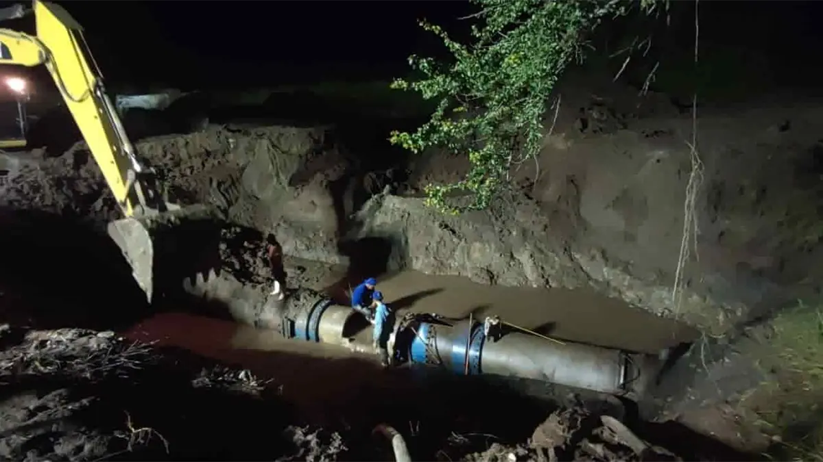 Para la recuperación del servicio de agua en el menor tiempo posible, el personal de la Junta de Agua Potable y Alcantarillado de Culiacán (Japac), ha trabajado desde el día domingo hasta la noche, en una zona de difícil acceso al tratarse de una tubería.