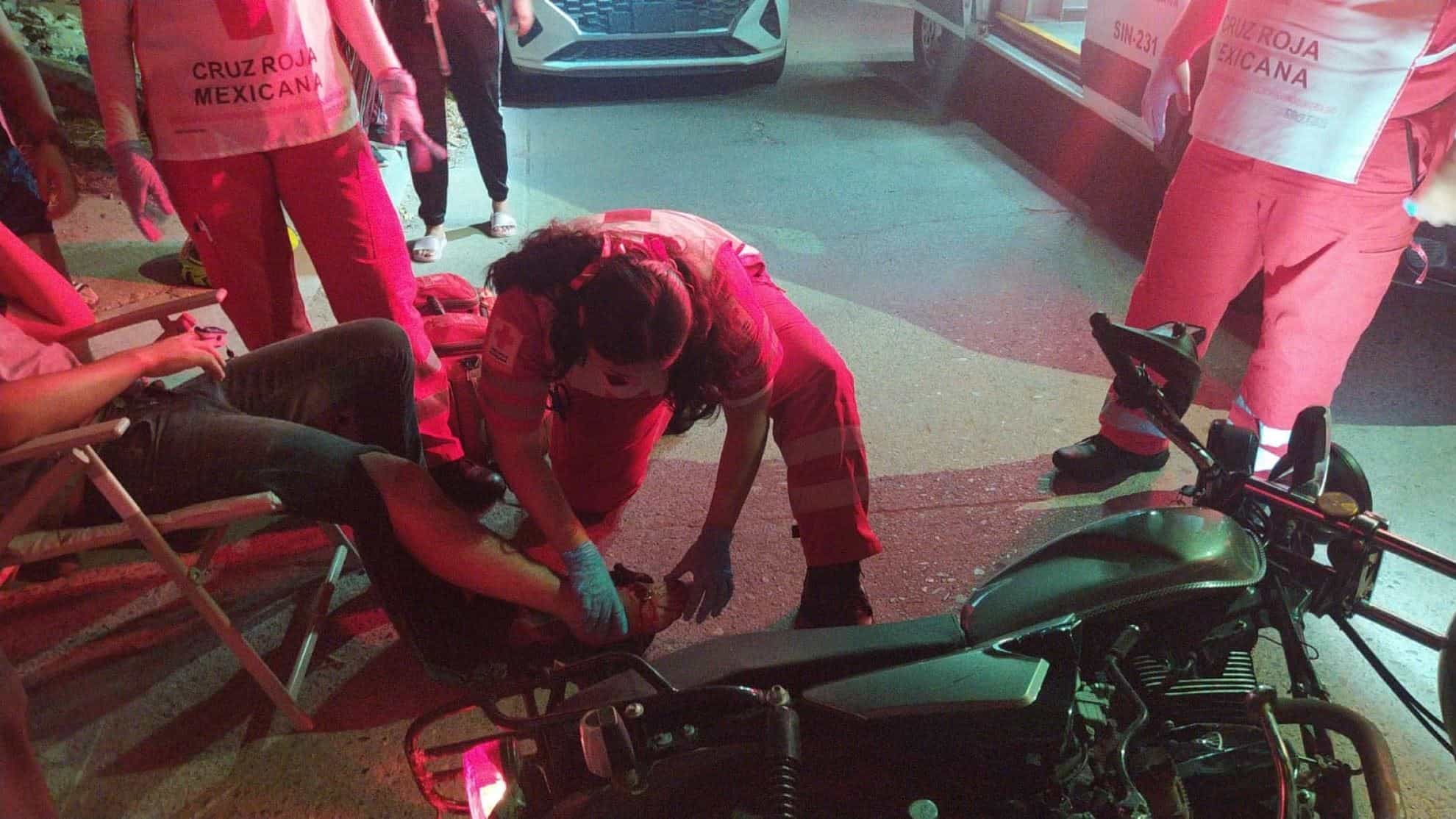 Claudio, de 17 años de edad, vecino de la colonia Las Cucas, resultó con fractura expuesta al ser atropellado cuando conducía una motocicleta en la colonia Lombardo Toledano, en Culiacán.