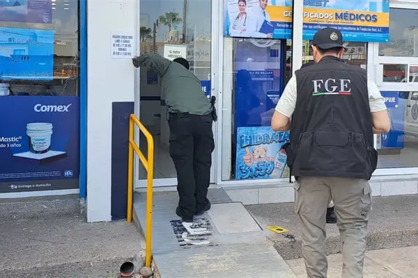 Los agentes de la Policía Ministerial señalaron que los hechos se dieron durante esta mañana, cuando los trabajadores de una farmacia que se ubica por el bulevar Santa Fe, entre Santa Leonor y Salvador Alvarado reportaron al 911 que los cristales estaban dañados a balazos.