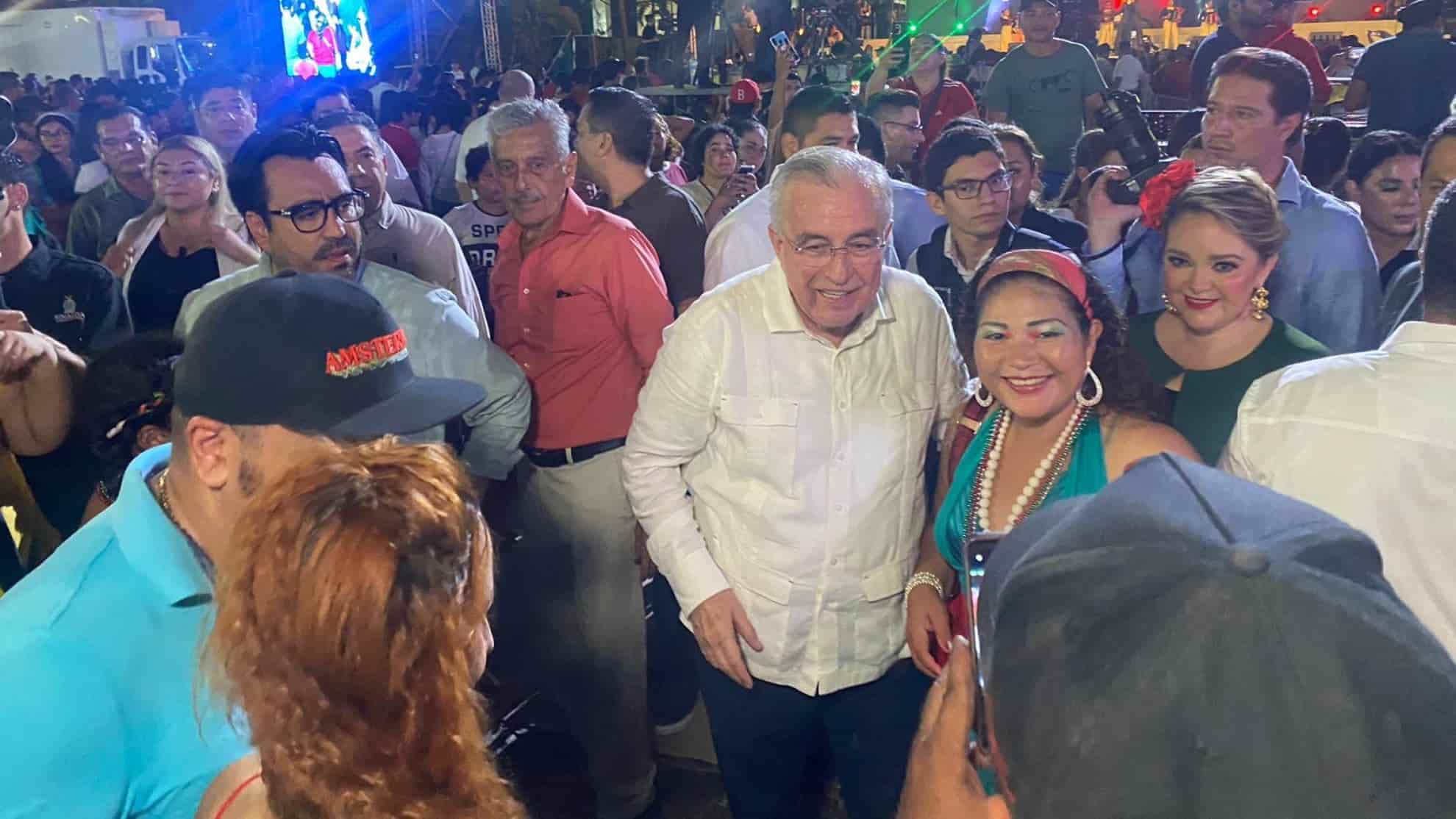Rocha Moya saluda a los culiacanenses en la fiesta del Grito de Independencia