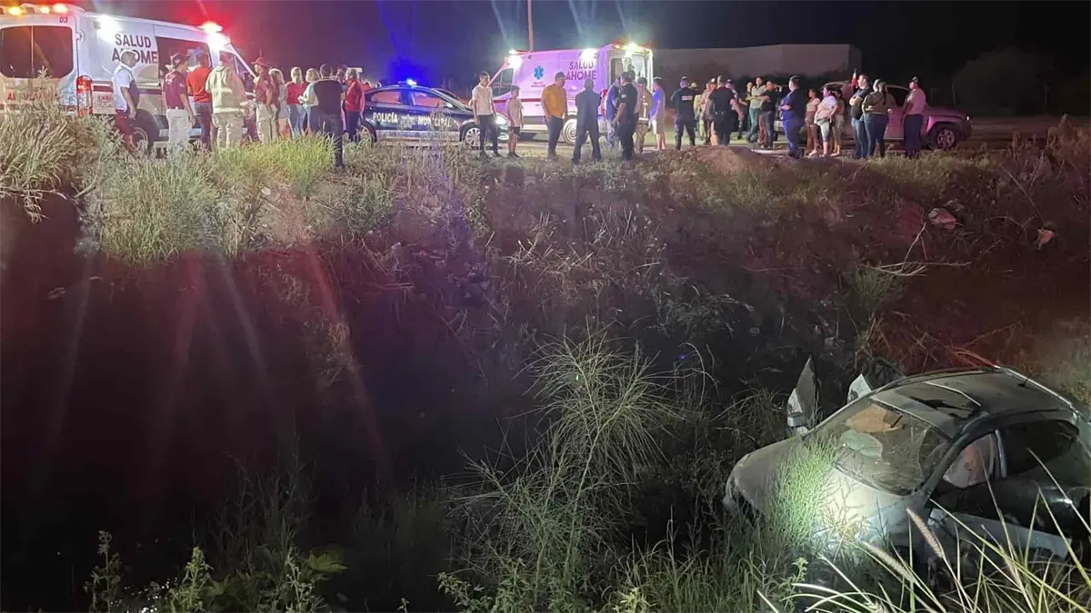Tres personas, entre ellas dos niños pequeños, resultaron lesionadas luego de que el vehículo en el que viajaran terminara al interior de un dren en las inmediaciones del ejido Mochis, en Ahome.