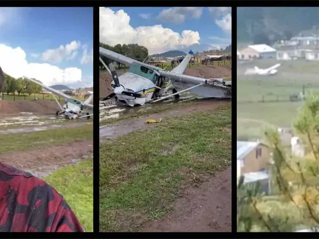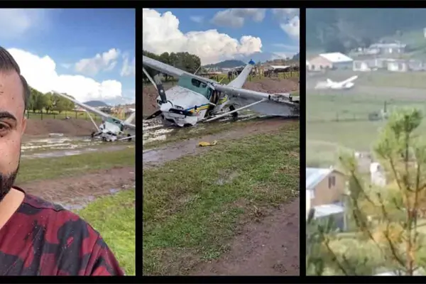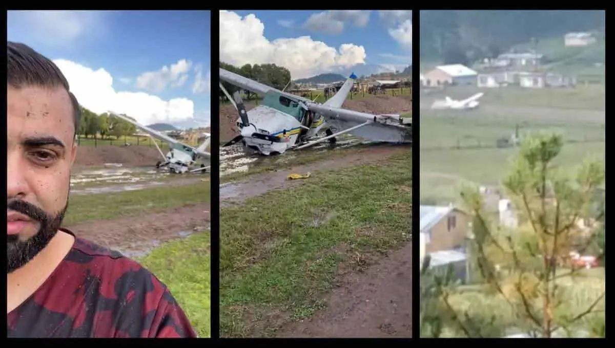 En cuando la avioneta tocó tierra, las llantas de la misma se atoraron en el lodo y el agua, por lo que derrapó unos metros, se inclinó a un costado, rompiendo un ala y luego dando al menos 3 vueltas para que luego detenerse.