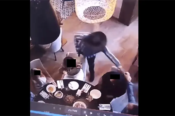 Las imágenes fueron captadas por una videocamara de seguridad, en la cual se observa a un hombre con un sombrero color obscuro asaltar a varios comensales mientras el restaurante estaba lleno, mientras sale como si nada hubiera pasado.