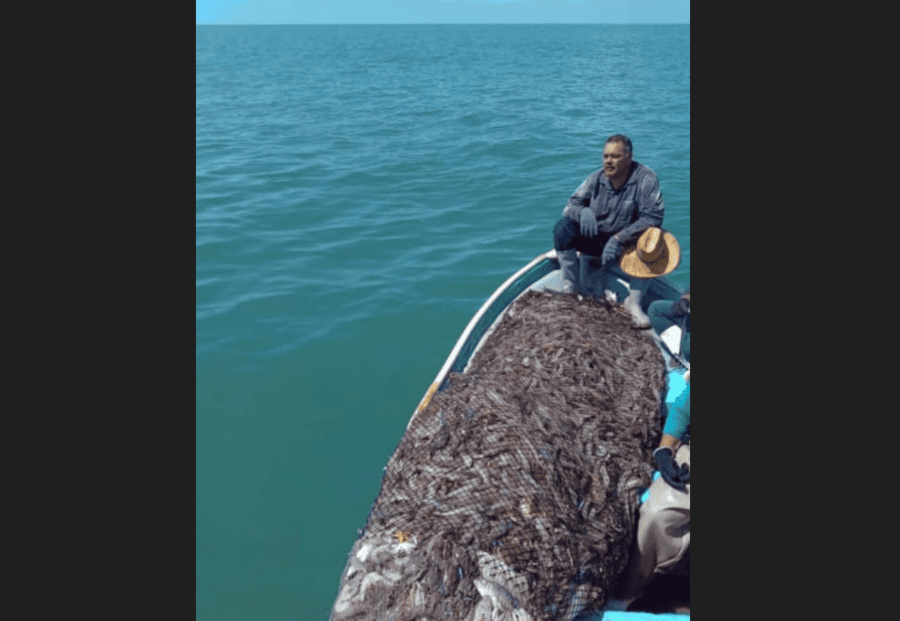 En un vídeo, que llegó a la redacción de Luz Noticias, se puede observar como los pescadores ribereños, usando una red denominada «chango», se encuentran en altamar (zona prohibida en este momento) donde pescan todo a su paso.