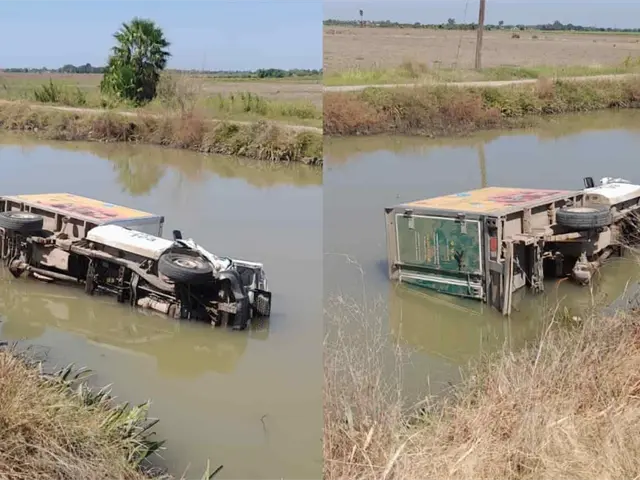 El accidente se registró cerca de las 14:00 horas de hoy, sobre el bordo del canal Diagonal, aproximadamente a 2 kilómetros antes de llegar a la comunidad de La Bebelama, en donde por causas desconocidas el chofer perdió el control del volante y cayó a la obra hidráulica.