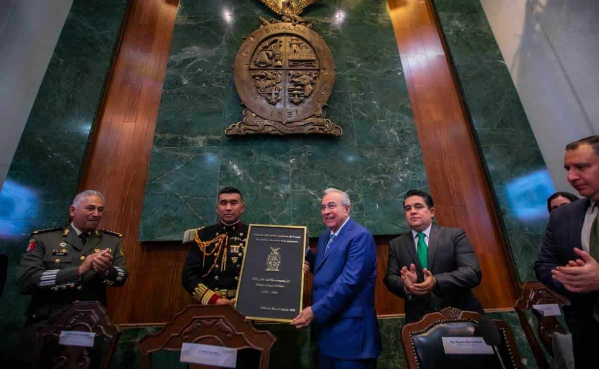 El Gobernador del Estado, Rubén Rocha Moya, calificó la inscripción en Letras Doradas del Bicentenario del Heroico Colegio Militar como un hecho histórico.