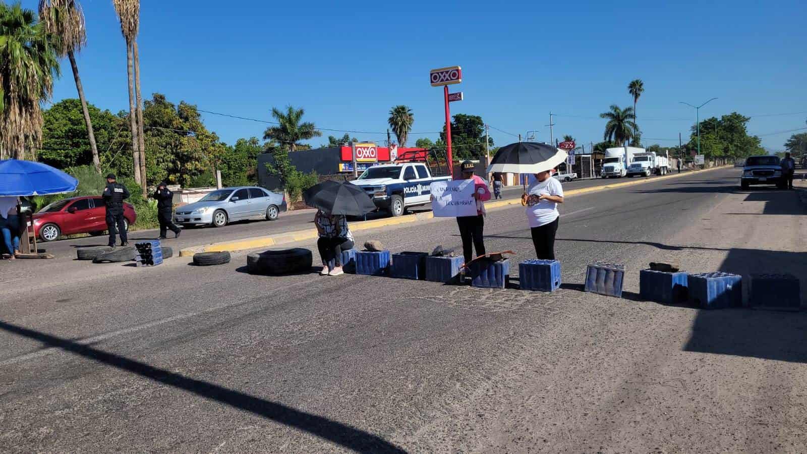 Por segundo día consecutivo, padres de familia de la Escuela Primaria Cristóbal Colón, ubicada en el ejido Los Taxtes, sobre la carretera Los Mochis - El Fuerte, bloquearon el flujo de tráfico en ambos carriles y las carreteras que conducen a El Teroque y el Campo 35 en exigencia de la contrucción de una techumbre.