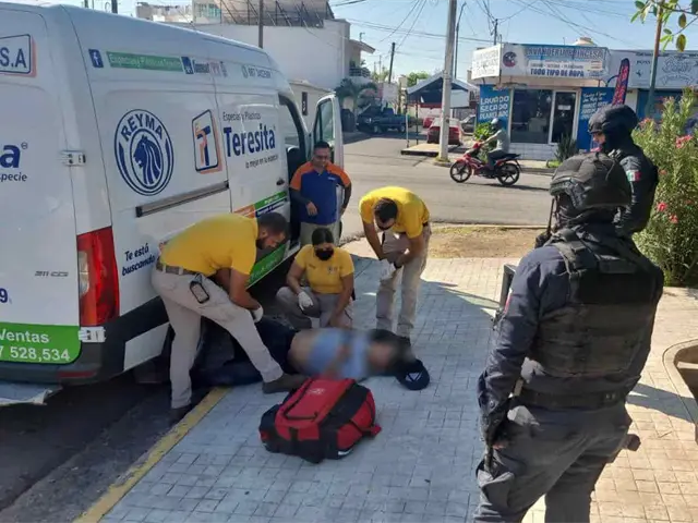 Porteriormente, unos elementos de la Policía Estatal Preventiva le brindaron la atención y solicitaron la presencia de los paramédicos.