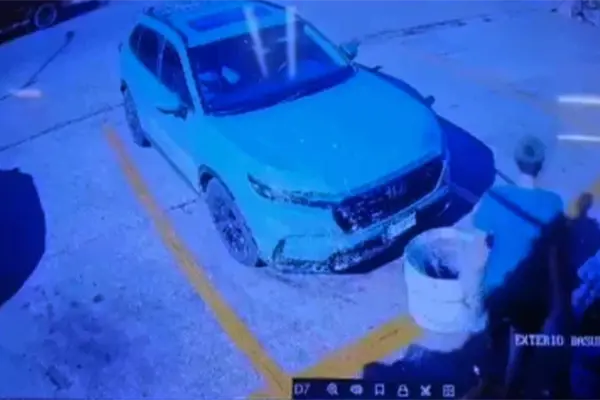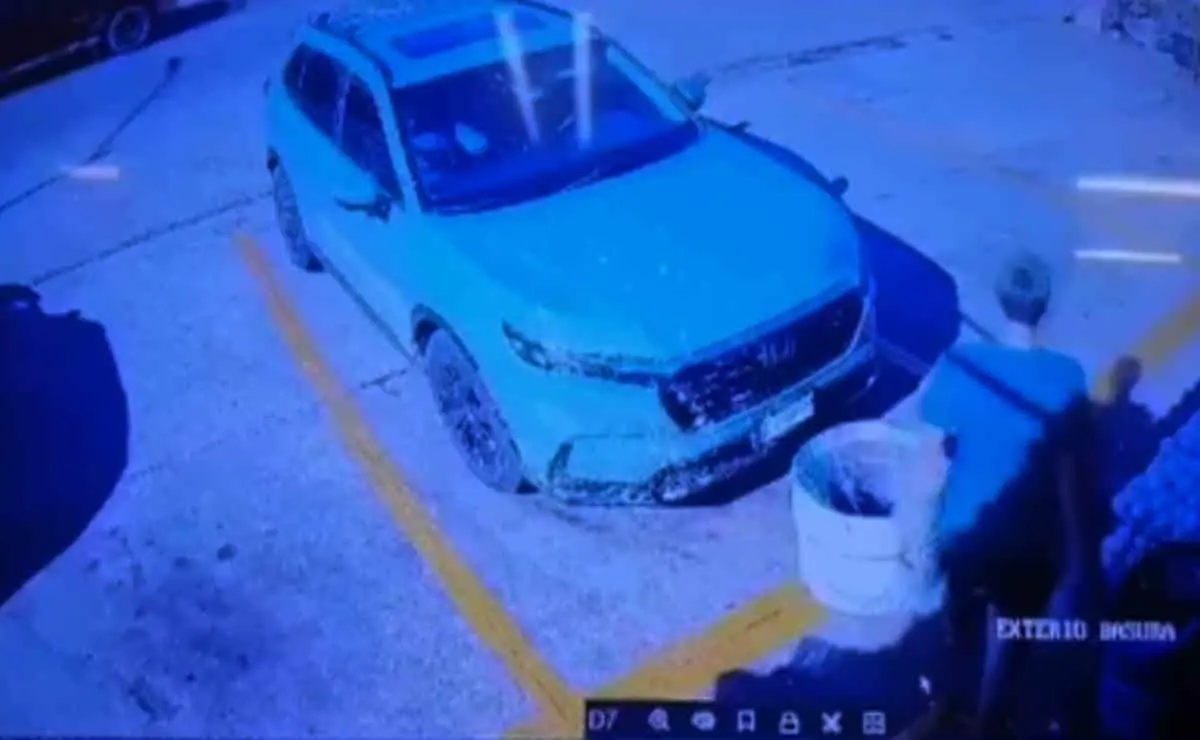Posteriormente, en las imágenes de una cámara de seguridad, se puede observar que uno de sus tripulantes del vehículo gris sacó un arma de fuego y le exigió a la mujer descendiera de la unidad.