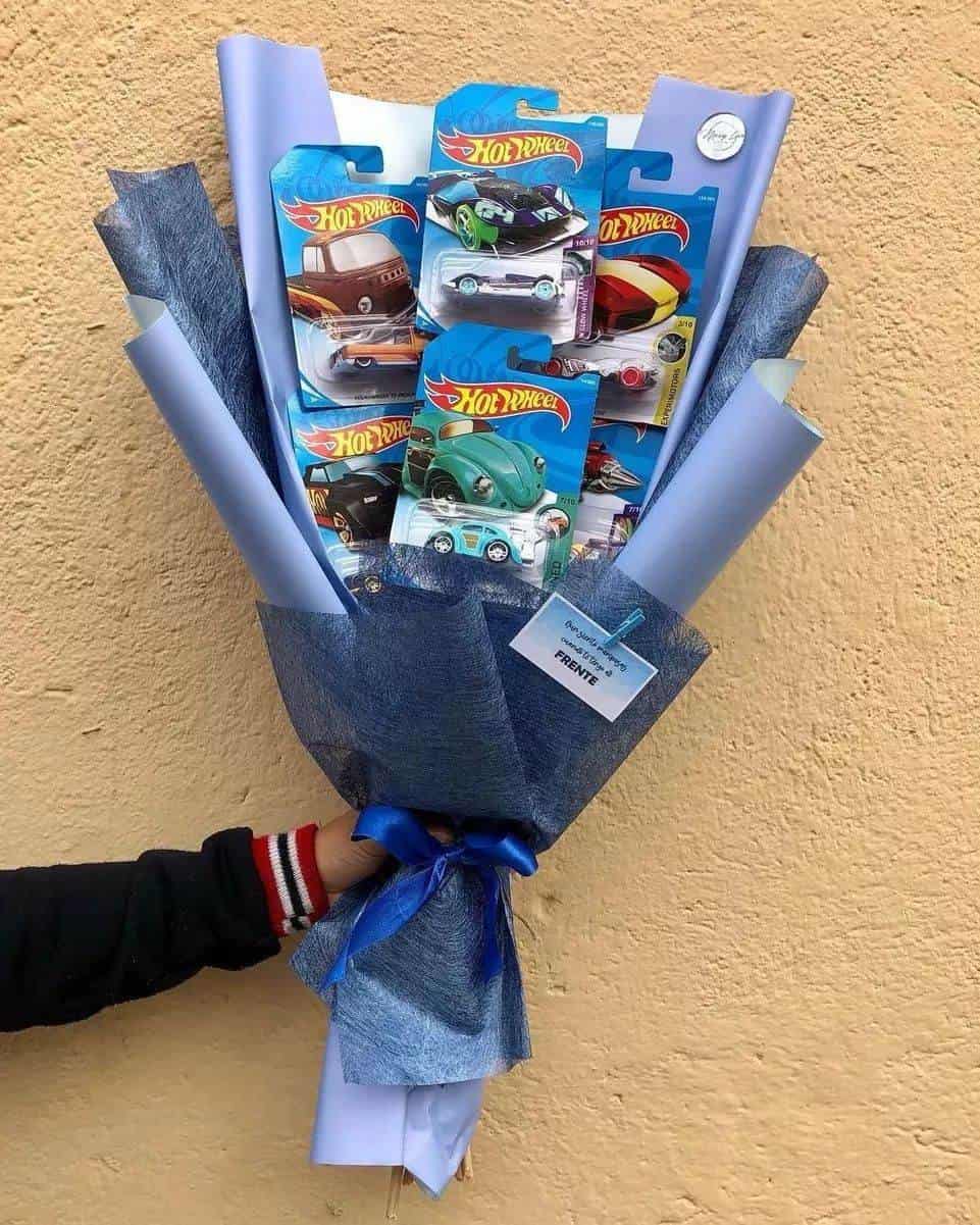 - En un video que circula en TikTok, se pueden apreciar ramos artísticamente adornados con carritos Hot Wheels, dulces, cervezas y detalles tiernos, evidenciando el entusiasmo de quienes están dispuestos a abrazar esta inusual tendencia.