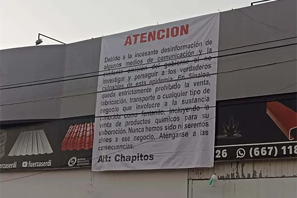 El Gobernador del estado, Rubén Rocha Moya informó que no tiene la certeza del origen de las «narcomantas» que amanecieron colocadas este lunes en diferentes municipios, donde se prohíbe la la venta y distribución Fentanilo.