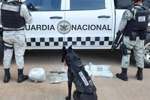 La unidad K9 de la Guardia Nacional logró asegurar droga en una paquetería de Culiacán