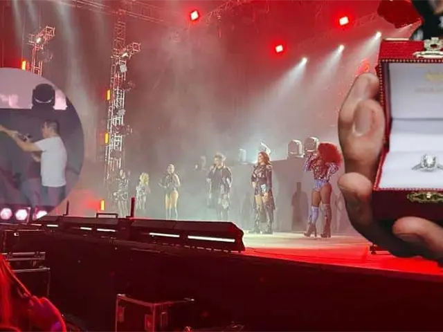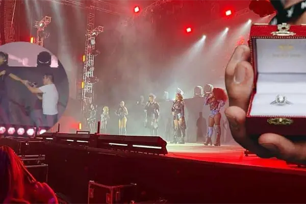 La pareja llevaba más de 10 años de relación y decidió dar el siguiente paso durante la presentación del grupo pop.