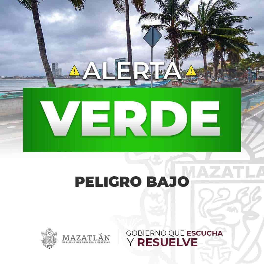 En el caso de Mazatlán, el Coordinador Municipal de Protección Civil, Eloy Ruiz Gastélum, informó a las 9:00 de la mañana, que Mazatlán, junto con los municipios del sur del estado habían pasado de alerta azul a alerta verde, por ello, incitó a la ciudadanía a mantenerse informados de fuentes oficiales, para el seguimiento y trayectoria de esta tormenta.