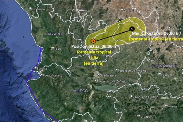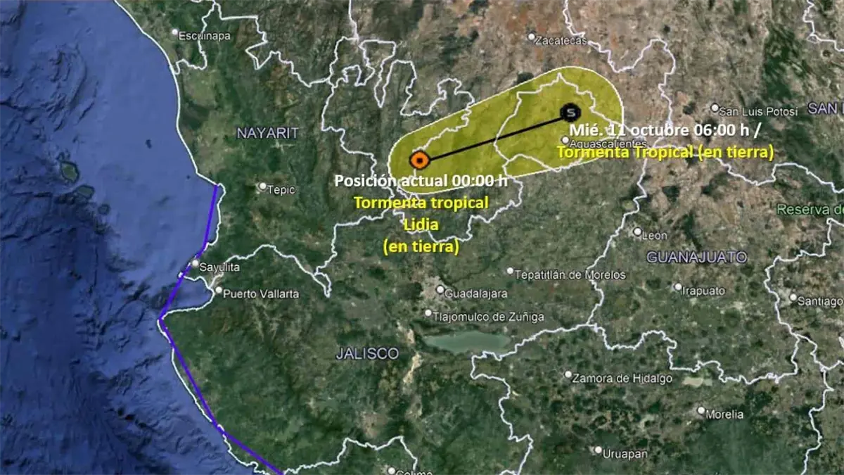 Luego de una semana de incertidumbre ante lo impredecible que resultó, «Lidia» ya se encuentra en territorio mexicano y se degradó a tormenta tropical; en los últimos minutos de este martes se localizaba al suroeste de Zacatecas y norte de Jalisco.