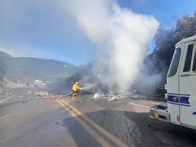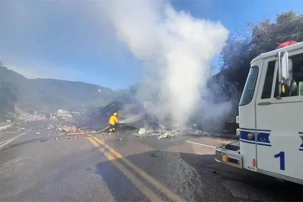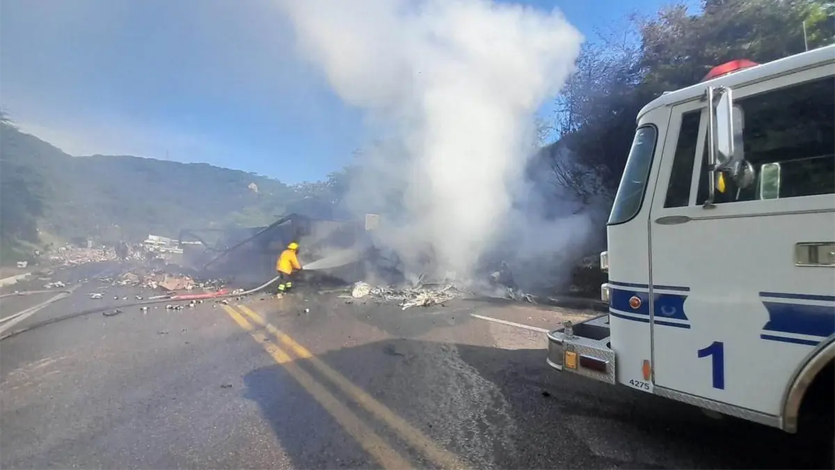 Se quema tráiler cargado con cerveza tras volcar en la sierra de Concordia