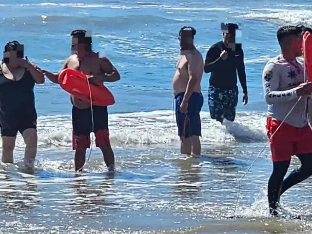 Pese a los llamados a respetar las recomendaciones para ingresar al mar, un grupo de cuatro jóvenes se introdujo en las Playas del Camarón; tiempo después fueron jalados por la marea y necesitaron apoyo para salir.
