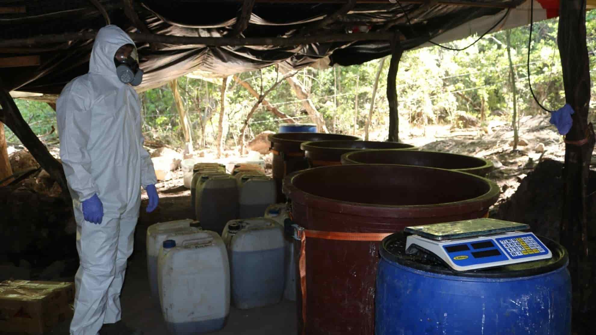 La Secretaría de la Defensa Nacional, a través de las Comandancias de la III Región Militar y la 9/a. Zona Militar, localizaron y desmantelaron un laboratorio clandestino para la elaboración de droga sintética en el municipio de Sinaloa, que tenía en operaciones desde hace poco más de un par de meses.