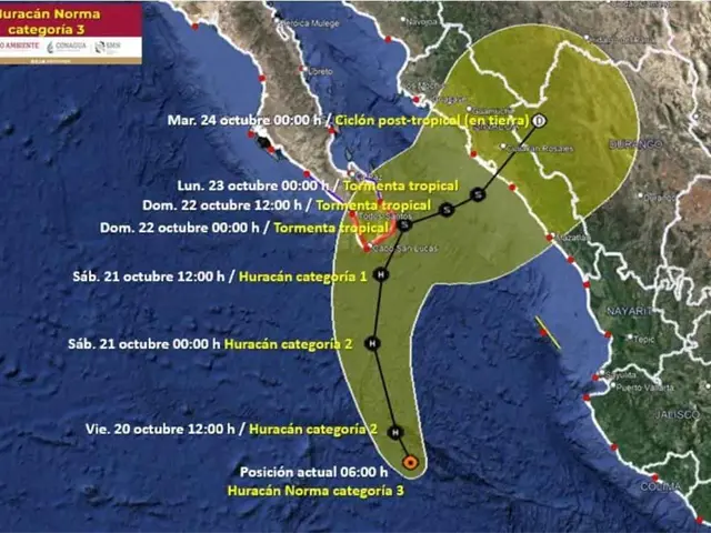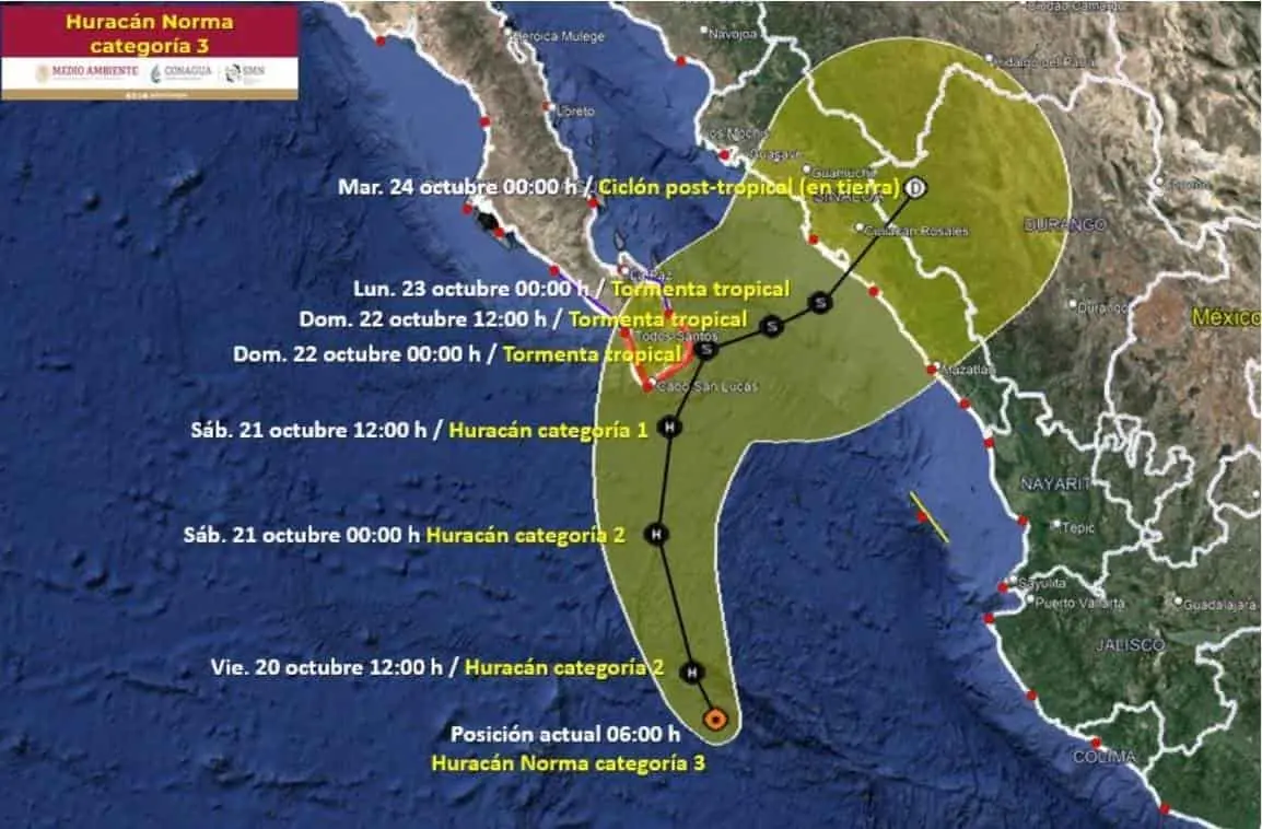- «Norma» apunta al centro de Sinaloa; podría impactar este domingo en Los Cabos