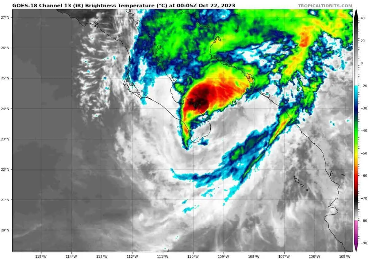 Actualmente se ubica a 45 KM Nor-noresre de Cabo San Lucas, con vientos máximos sostenidos de 110 KM/H y se ha desviado de su trayectoria más al centro norte de Sinaloa.