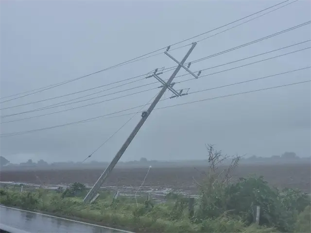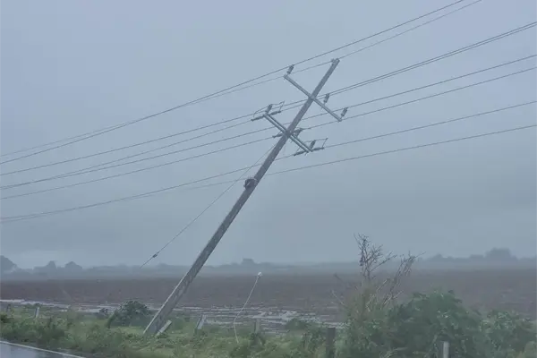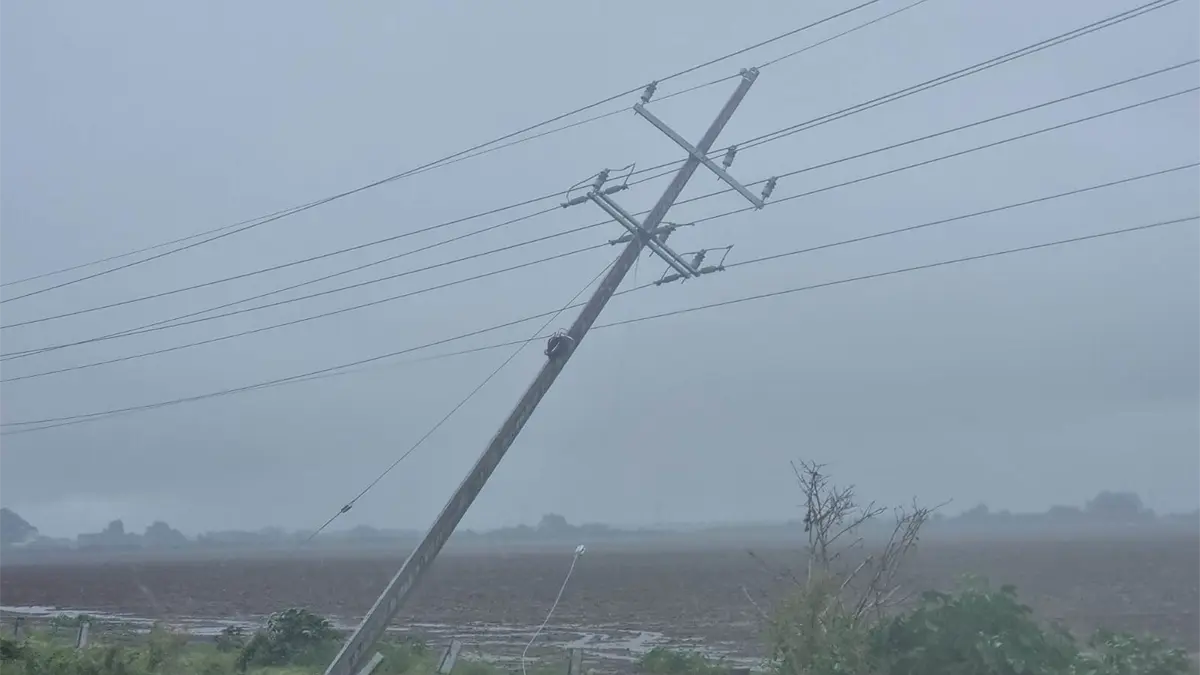 Personal de la Comisión Federal de Electricidad realiza trabajos de reparación por la caída de varios postes de la CFE, que se cayeron debido a las lluvias de Norma.