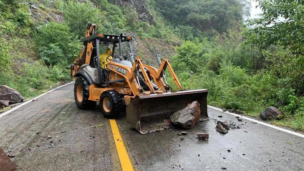 «El tramo La Palma a la Tuna, NO hay circulación, se trabaja arduamente con maquinaria que proporcionó el gobierno estatal para agilizar la limpieza», expresa el comunicado.