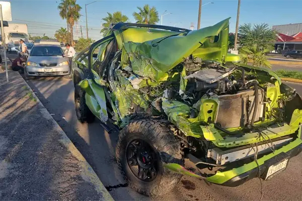 Fue alrededor de las 06:20 horas de este viernes 27 de octubre, cuando el conductor de una camioneta Toyota Tacoma de modelo reciente conducía a exceso de velocidad por el bulevar Paseo de Los Ganaderos cuando al llegar a la altura de la Feria de Ganaderos, se impactó contra un Toyota Corolla de color gris, para después quedar debajo de un camión de carga.