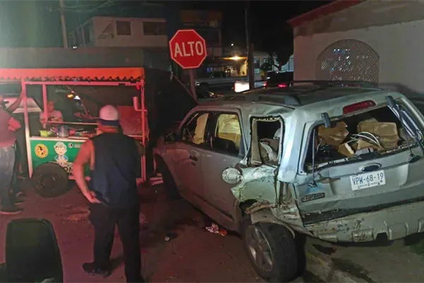 Se estableció que el control se impactó contra una vagoneta de la marca Ford, línea escape, de color gris, modelo 2008, misma que se encontraba estacionada junto a una carreta de tacos, pero con el fuerte impacto, esta salió proyectada junto con una carreta hechiza de color blanco en la que venden tacos, a su vez una motocicleta de la marca Italika FT-125; dejó daños en las unidades por más de 25 mil pesos.