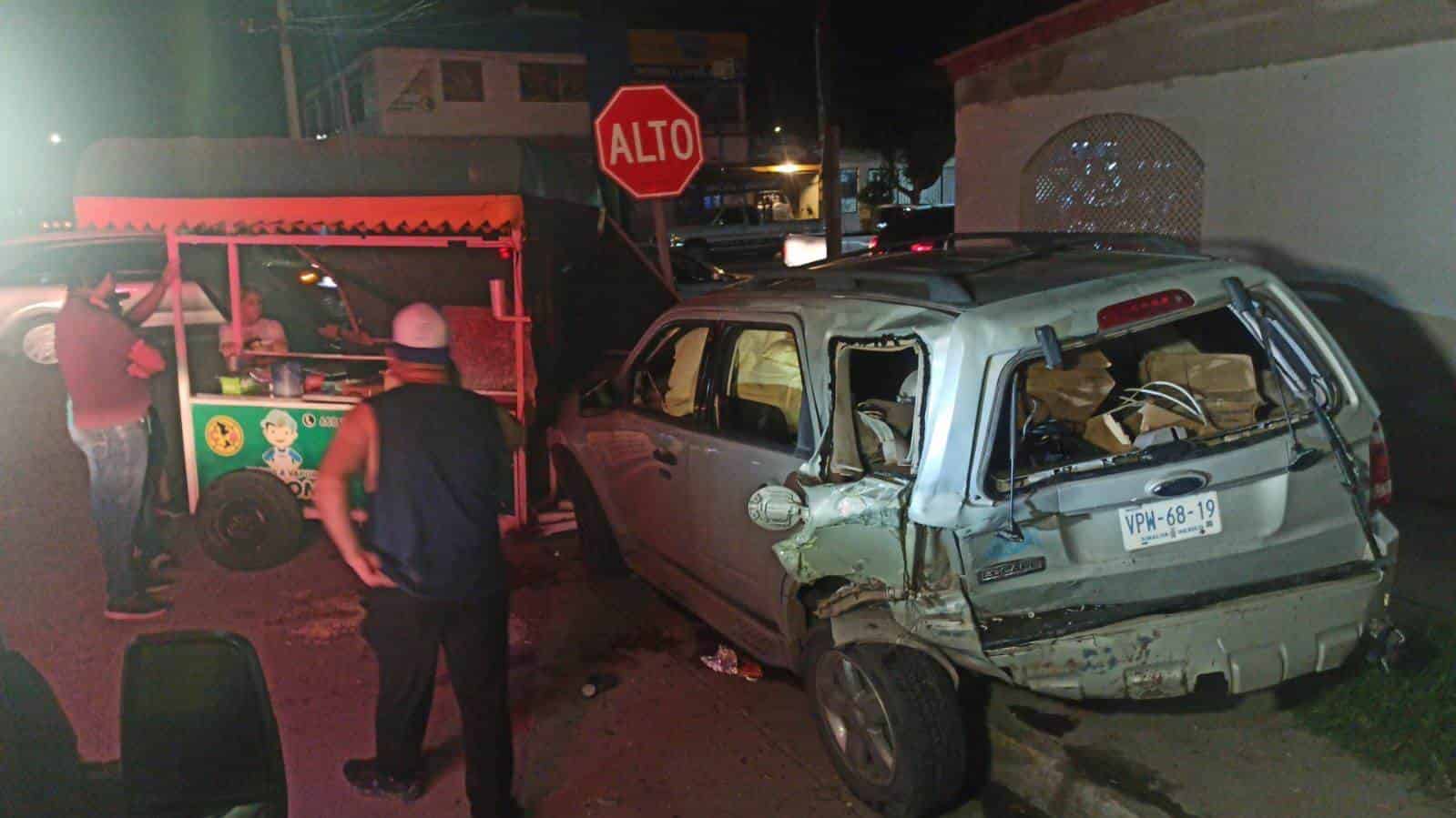 Sujeto choca y se lleva consigo una carreta de tacos y una vagoneta; se da la fuga pero lo detienen