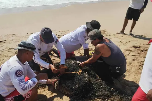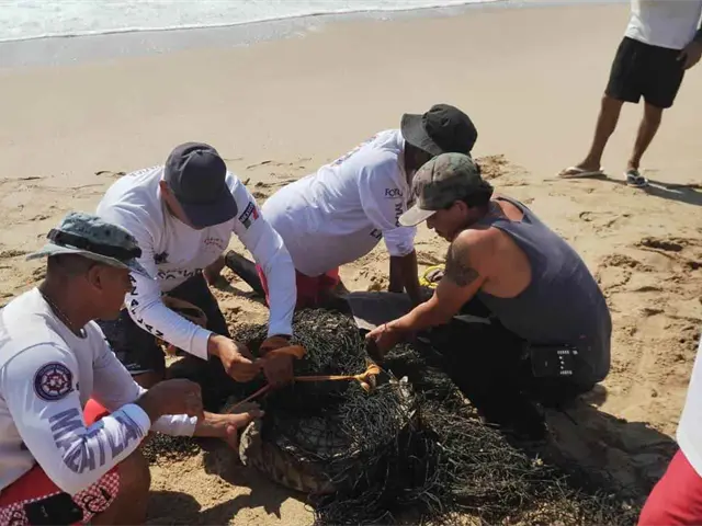 Policía Acuática captura a un cocodrilo en Playa Cerritos, Mazatlán