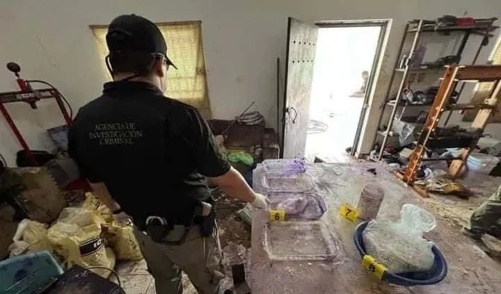 En el inmueble hallaron bidones con químicos, recipientes, mesas, bules, y aditamentos para la fabricación de droga por lo que fue asegurado y se le colocaron sellos como parte del protocolo de investigación por parte de la FGR.