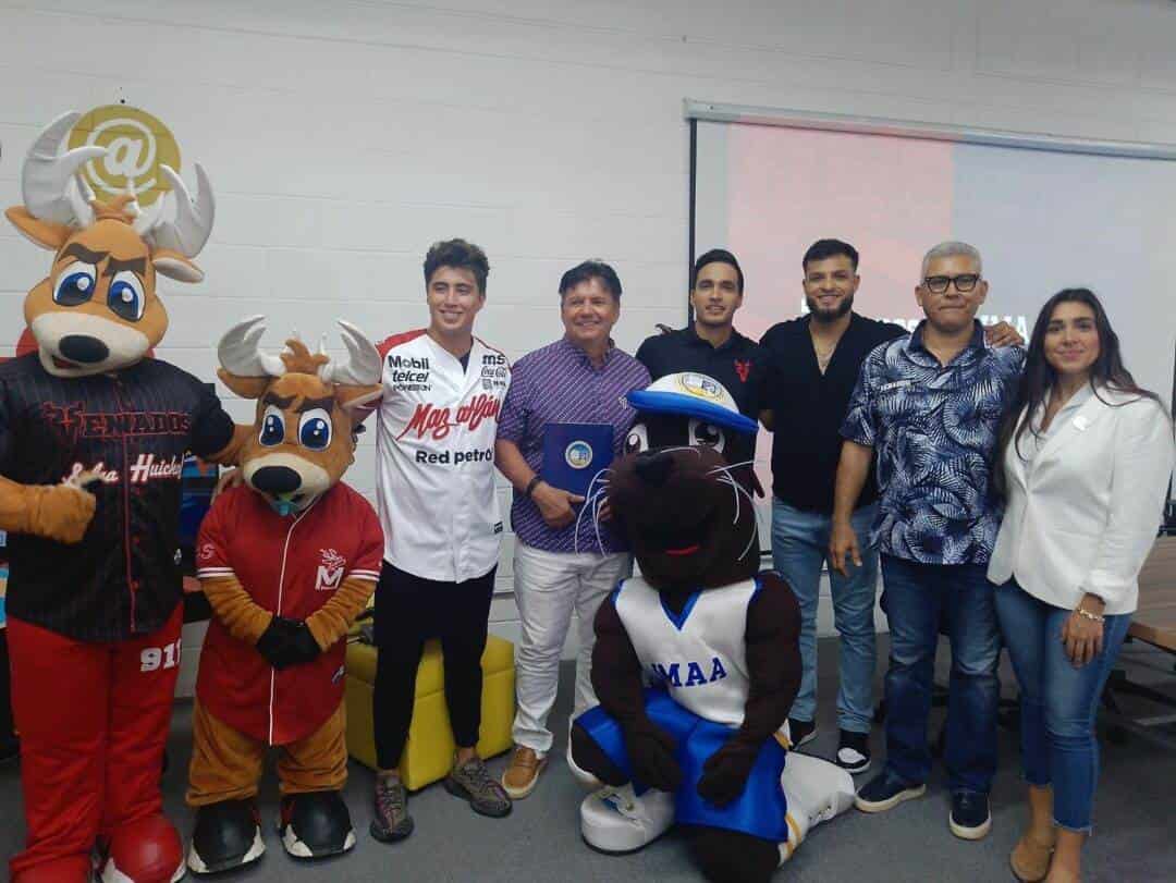 En la firma de convenio estuvieron también la directora general adjunta del IMAA, Nora Ceballos; el gerente Deportivo de Venados, Jesús ‘Chino’ Valdez; los beisbolistas Alonzo Gaytán (jardinero central), Santiago Gómez (infielder) e Ítalo Motta (short stop).