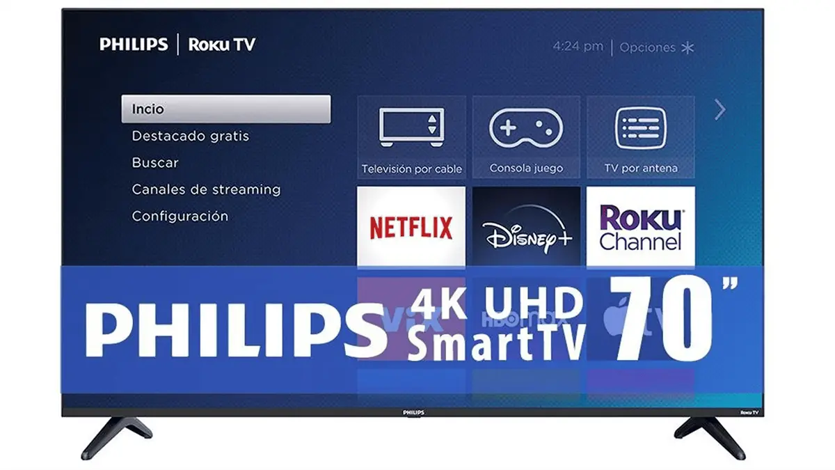 Una de las promociones más atractivas que tiene Walmart en este Fin Irresistible y que podrás consultar directamente en su sitio web, es la de televisión gigante Phillips de 70", con Roku integrado y 4K Ultra HD a menos de 10 mil 500 pesos.