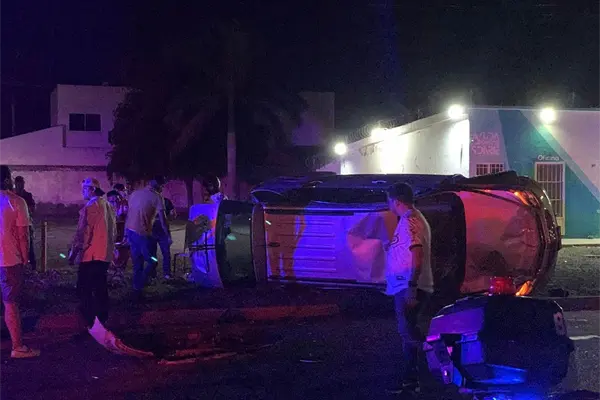 Jóvenes circulaban borrachas en Los Mochis, chocan y provocan volcadura