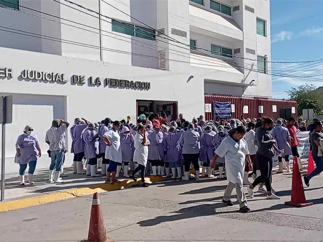 Mujeres empacadoras y descabezadoras de camarón del norte del estado de Sinaloa se manifestaron en el Juzgado Séptimo del Poder Judicial de la Federación en Los Mochis para exigir frenar la importación de camarón proveniente de Ecuador a México.