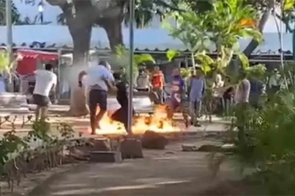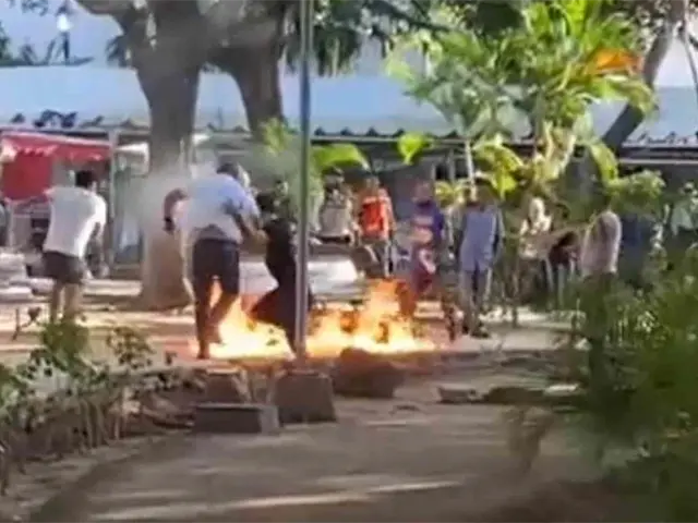 A través de un video que circula en redes, se observa a sujetos discutir, rociar gasolina, prender fuego y realizar los disparos, todo frente a un policía.