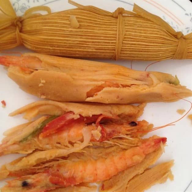 La masa es igual a la de un tamal común, pero aquí lo especial, es que la de camarones barbones está preparada con un adobo de la casa y caldo de camarón, lo que hace darle ese toque y sabor especial.