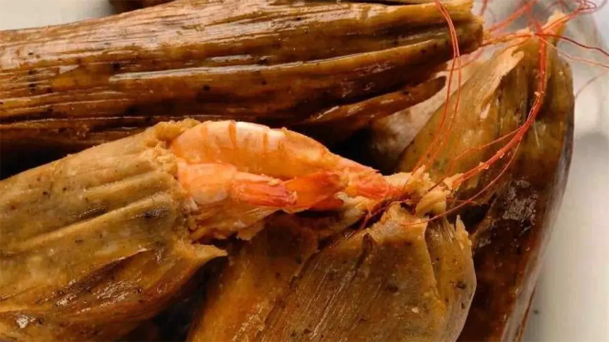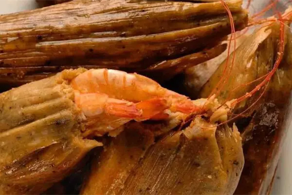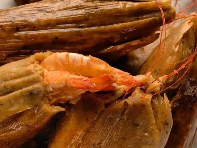 Los tamales de camarón barbón son cocinados a fuego lento y a la leña.