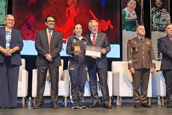 Este lunes el Gobernador de Sinaloa, Rubén Rocha Moya, otorgó el reconocimiento a las ganadoras del Premio Estatal del Deporte 2023, mismo que se adjudicó Luz Daniela Gaxiola y Rosa María Guerrero.