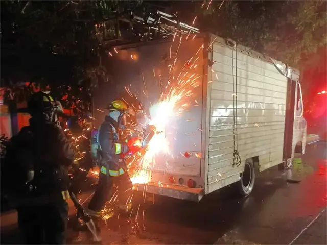 Tras la extinción de las llamas el resultado reveló que la unidad había terminado calcinada; entre los equipos afectados están bocinas derretidas, luces chamuscadas y tecnología digital reducida a cenizas.