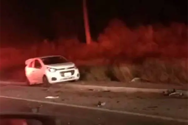 Tras el choque, la unidad Chevrolet salió expulsada de la carretera para quedar entre la banqueta y el acotamiento, mientras que el Ford Focus se volcó y se incendió.